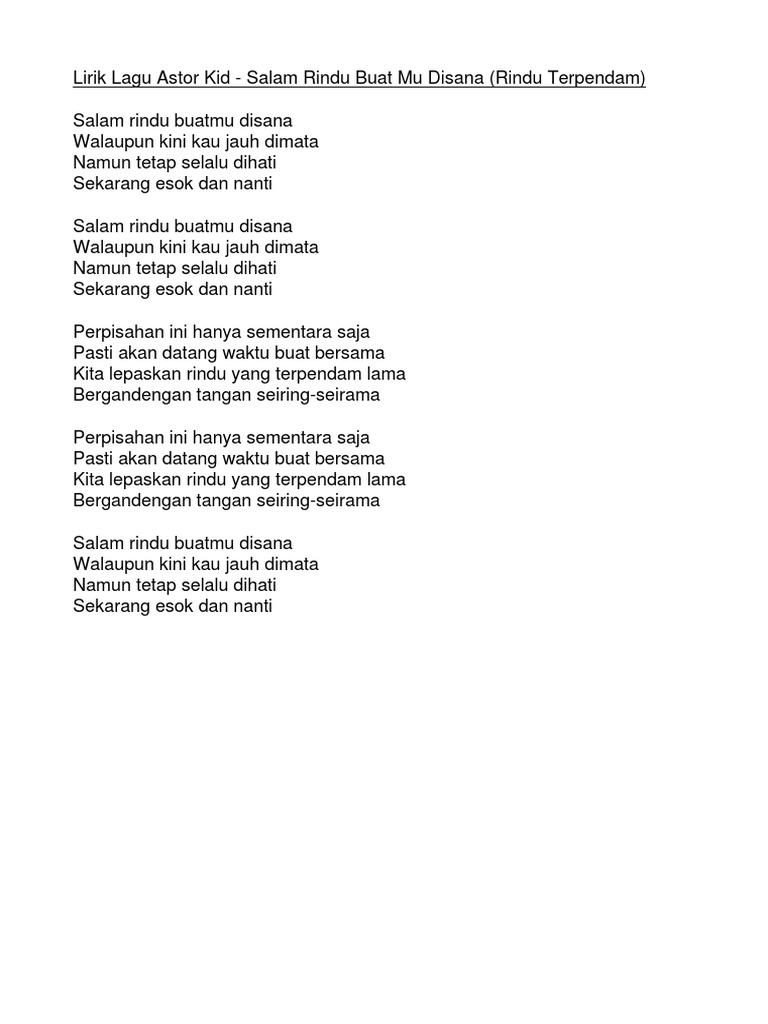 Lirik Lagu Astor Kid Salam Rindu Buat Mu Disana Rindu Terpendam Pdf